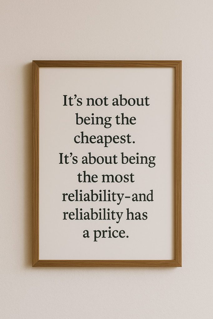 It’s not about being the cheapest. It’s about being the most reliable — and reliability has a price.